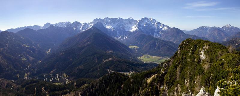 Razgled na Kamniško Savinjske Alpe ter mejni prehod nad Jezerskim.